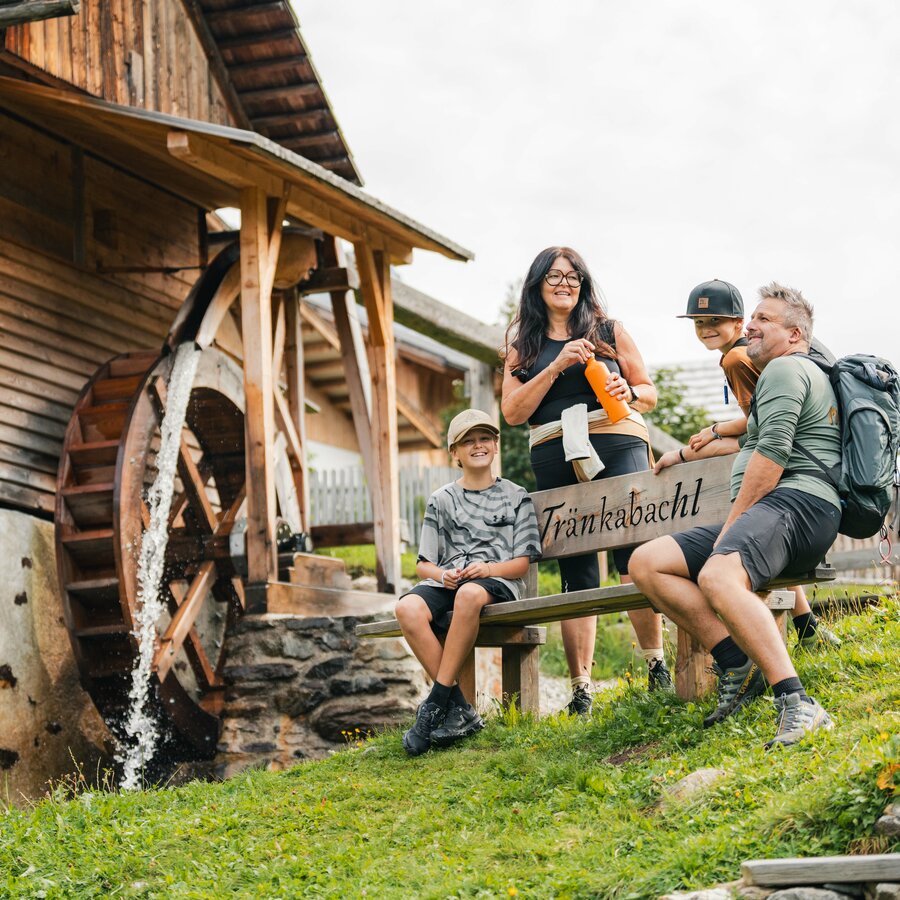 The Tränkabachl Cultural Trail in Antholz Obertal invites you to discover the Antholz Valley in its most authentic form. Along carefully restored grain mills, fences, and dry-stone walls, it tells the story of everyday life in the past – of cattle drives and farm work that shaped the valley for generations.