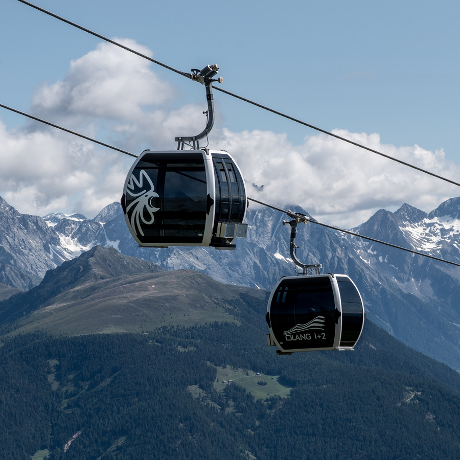 Der erste Alpenlift der „Olanger Seilbahnen AG“ – ein Skilift mit Einzelbügel – wurde schon 1966 am Kronplatz errichtet. Mit der neuen, top-modernen Kabinenumlaufbahn Olang 1+2 hat die Region jedoch ein völlig neues Kapitel der Aufstiegsanlagen aufgeschlagen: Unter den Schlagworten „technology – architecture – history“ wurde die schnellste und innovativste Aufstiegsanlage auf den Kronplatz in der Sommersaison 2021 in Betrieb genommen. In rund 11 Minuten geht’s damit direkt vom Tal auf den Gipfel: