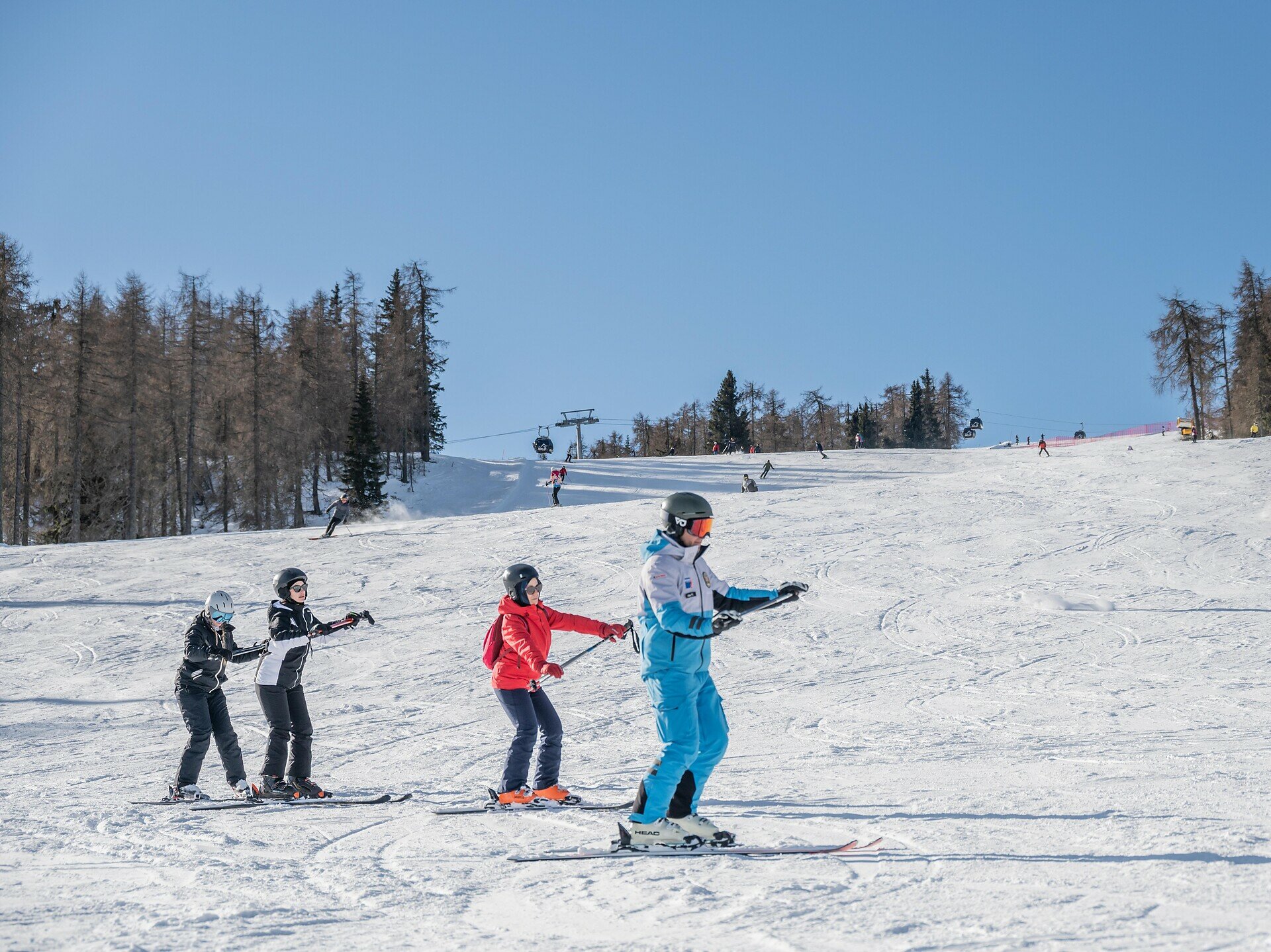 Ski courses and equipment can be conveniently booked online in advance and collected at the KronSchool ski rental in the village center of Olang. This allows guests to start their ski day relaxed and without waiting times.