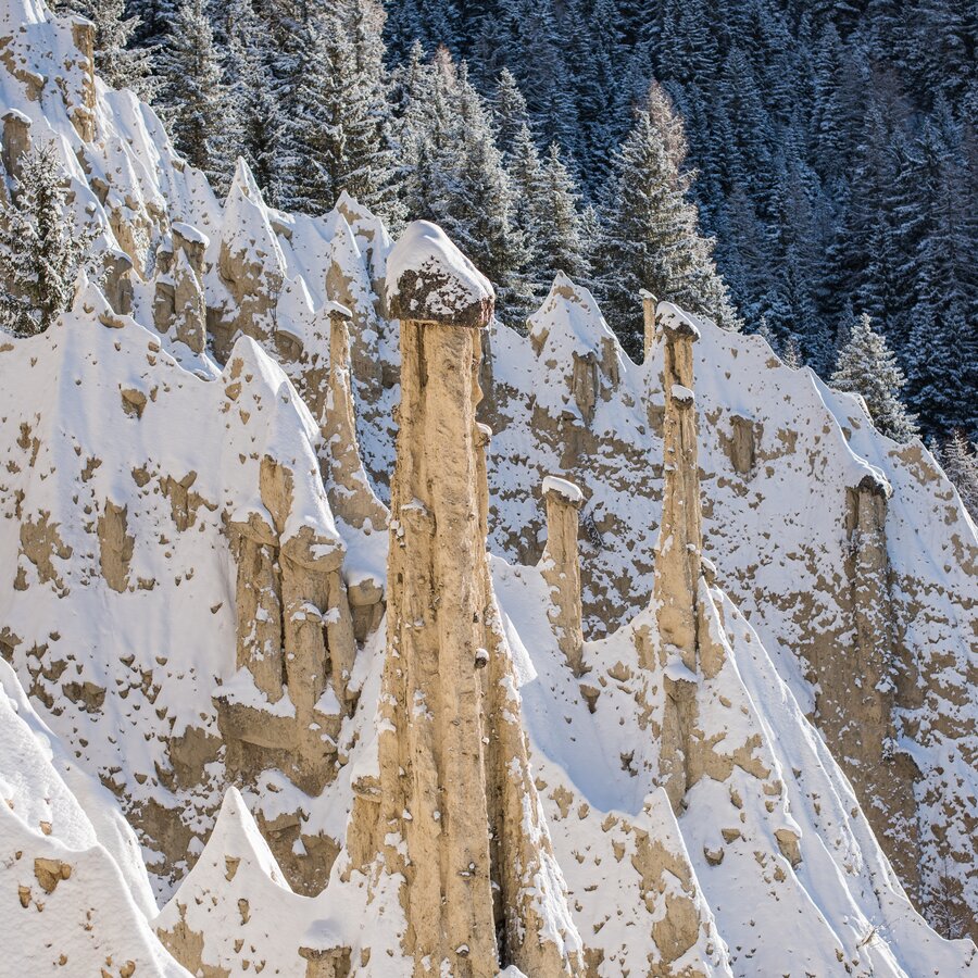 Hundreds of artistic pillar-like structures that rise steeply up into the sky. We are talking about the Earth Pyramids in Percha. One of Mother Nature’s masterpieces. Rainfall and dry periods gave her a hand and taking turns have produced the strange earth pillars with their stone caps. The process has taken many hundreds of years. By the time, after a short hike, you have stood and marvelled at them, you will agree with us that the walk was well worthwhile.