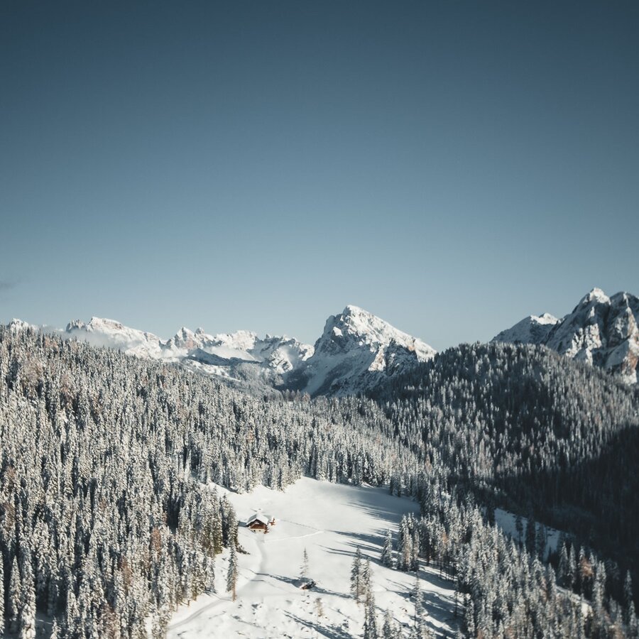 In mezzo al patrimonio mondiale delle Dolomiti UNESCO, il sentiero si snoda fino alla malga, dove potrete riscaldarvi in una stanza e godere la vista sulle Dolomiti di Valdaora.