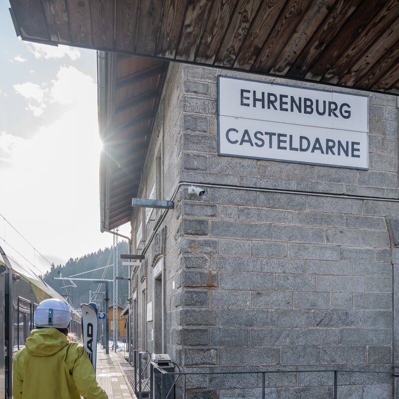 Fancy an unforgettable winter hike or thrilling toboggan ride? Again, you can easily reach the starting points without the need for a car and explore nature at your own pace. In addition, the train stations of Percha/Perca and Reischach/Versciaco are directly linked to the lift facilities: simply hop on the Ski Pustertal Express in Ehrenburg/Casteldarne to access both the Kronplatz and Drei Zinnen/Tre Cime ski area. And if you feel like heading for a day trip across the Austrian border, you can take the train to travel to the city of Lienz.