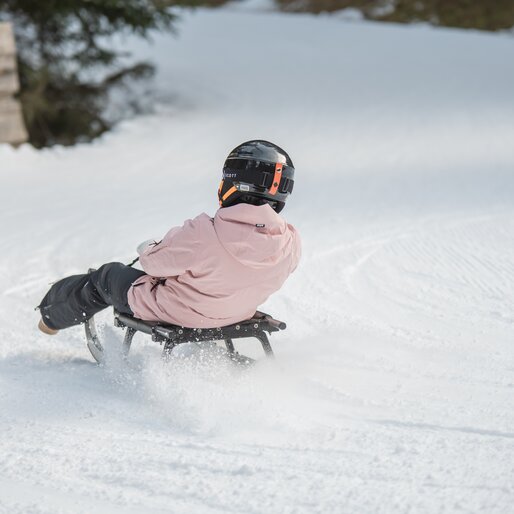 Lo senti? Quel brivido unico che solo una discesa in slittino può regalare. A Plan de Corones questo divertimento diventa un piccolo sogno d’inverno: risate, nasi freddi, aria pura di montagna e lo slittino che scivola veloce lungo il pendio innevato. Due piste da slittino, particolarmente adatte alle famiglie, ti aspettano: la pista Korer a Riscone, facile e veloce, e la suggestiva pista Cianross a San Vigilio di Marebbe, entrambe comodamente raggiungibili in cabinovia. Non hai con te lo slittino? Nessun problema: nei nostri noleggi sci troverai sicuramente quello più adatto a te.