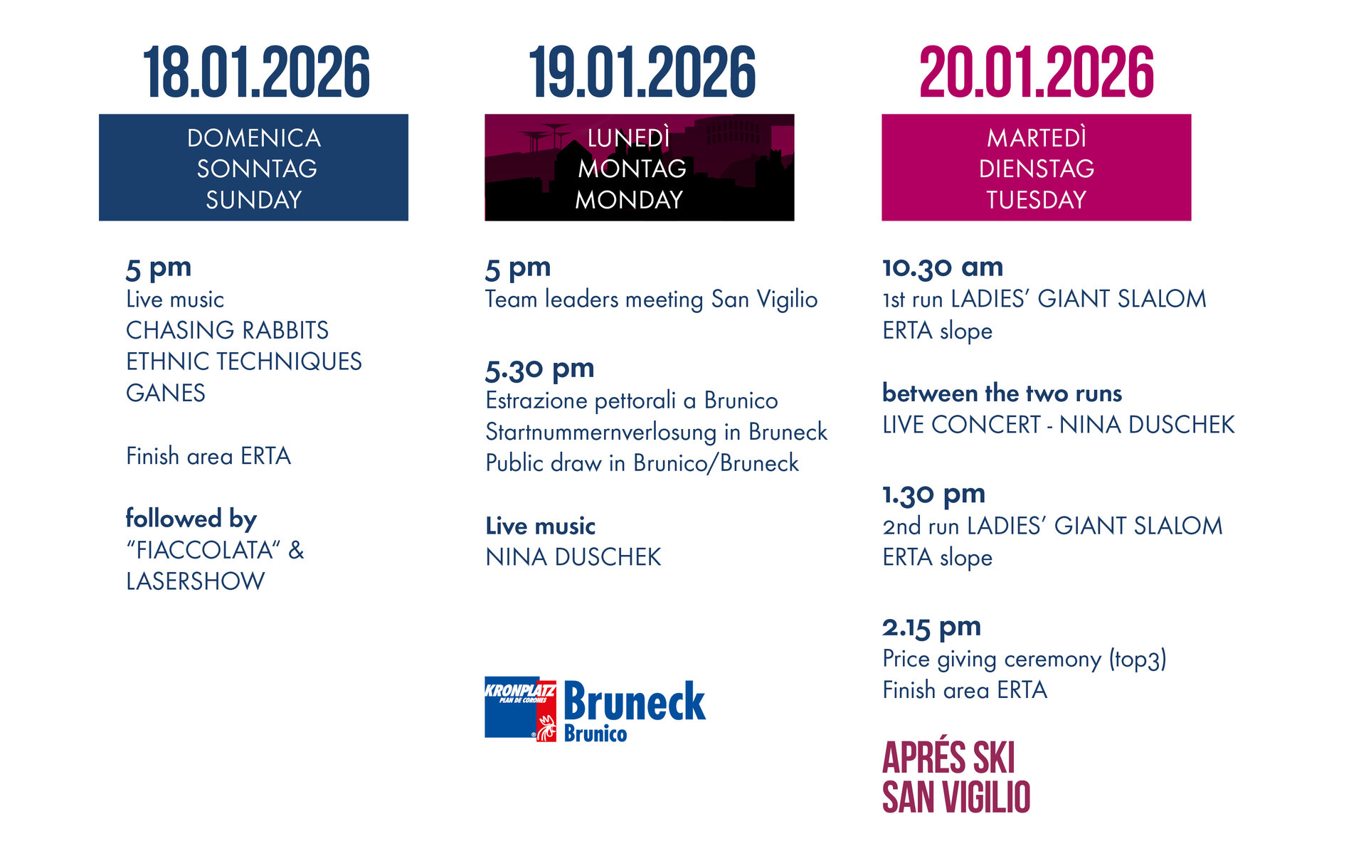 ore 17.30 - Estrazione pettorali a Brunico con musica live Nina Duschek