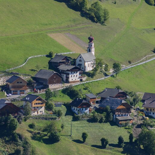 Pieve di Marebbe (in Ladin La Pli, in German Enneberg-Pfarre) is a village nestled in the Dolomites of South Tyrol, known for its network of small rural hamlets called “viles.” A vila is the typical Ladin settlement: a cluster of farmsteads gathered in a single location, where in the past several farming families lived side by side, sharing common facilities such as a small square, a fountain, a bread oven, and often a chapel.