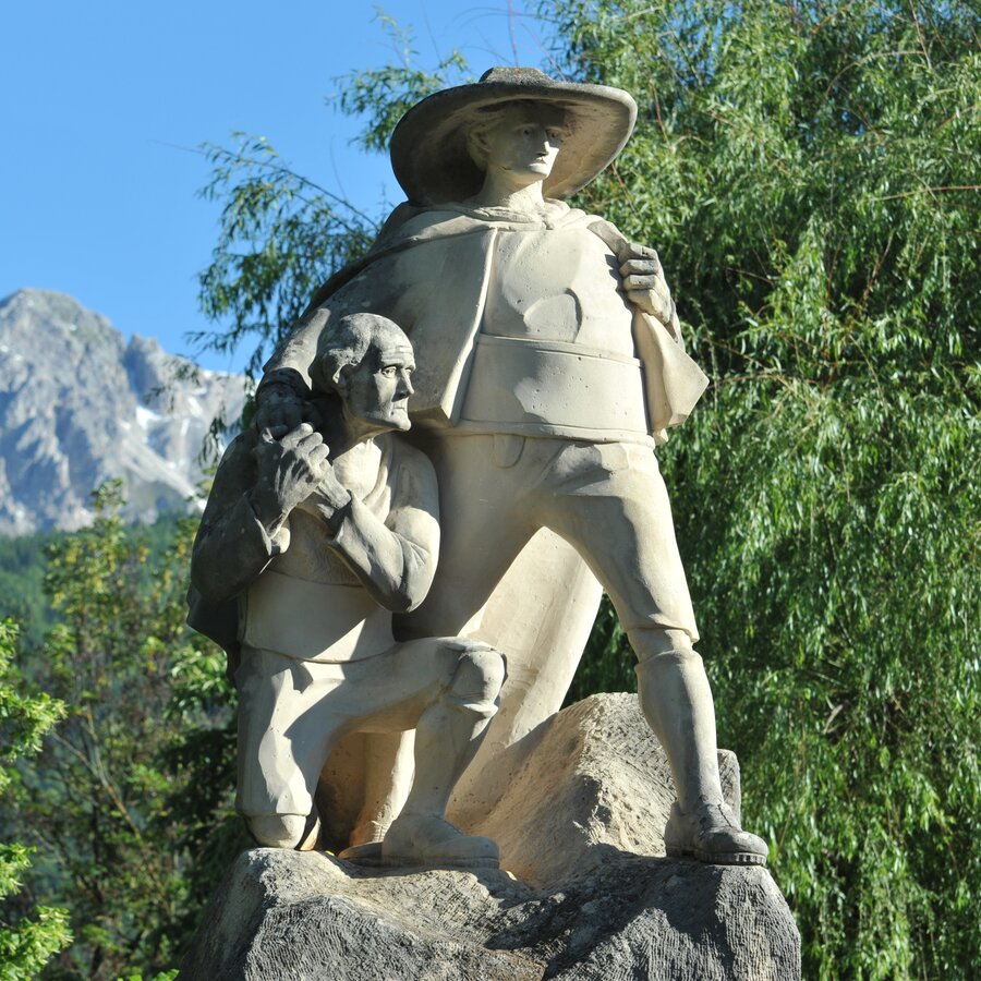 Peter Sigmayr, der Tharerwirt, war einer davon. Und sein Heimatdorf Olang ehrte ihn mit einem Denkmal: als sechs Meter hoher Sandstein-Mann steht er Tag für Tag allen Wettern trotzend da und blickt siegessicher wie einst über die Lande.